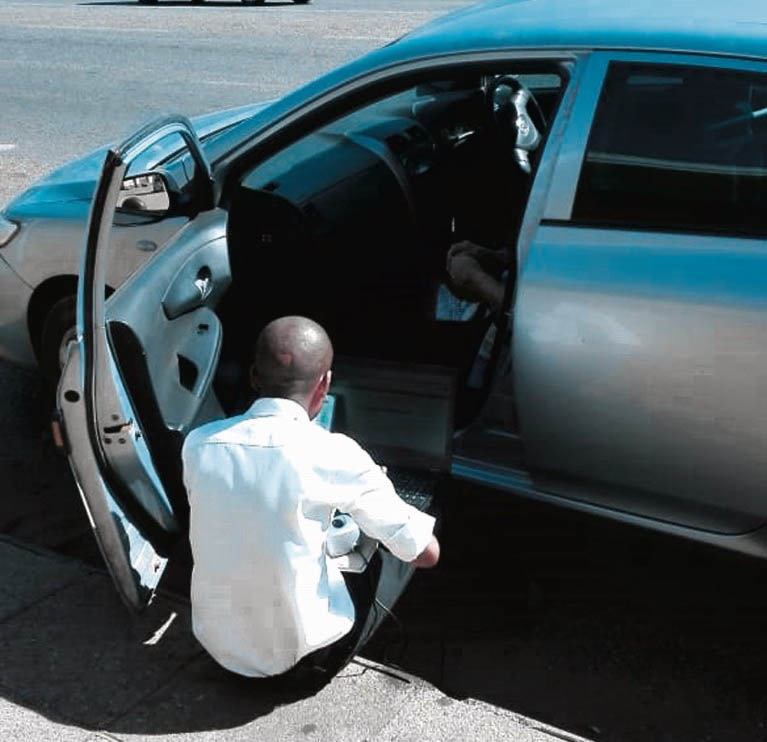 “’n Jong werknemer van die poskantoor het sy rekenaar na ons motor geneem en op die sypaadjie gaan sit om haar te help. Hy het besef dit is vir haar moeilik om uit die voertuig te klim.”