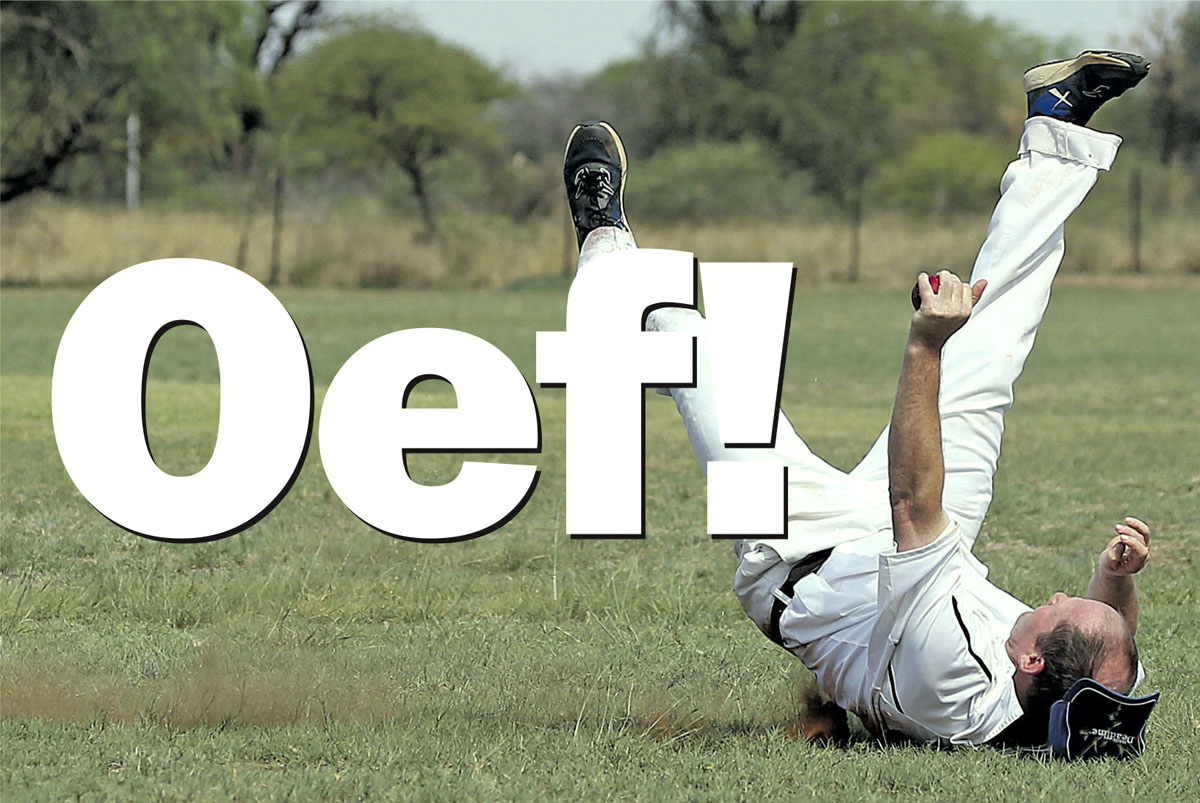 Soms lewer krieket ook grappige situasies op. Adriaan du Plessis sal beslis deur sy spanmaats vir hierdie brouvangskoot uitgehaal word. Du Plessis is deel van die Modimolle dorpspan wat die Waterberg-distrik se ligawenners is. Foto: Herman Steyn
