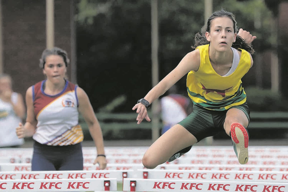 Frances de Jonge van Hoërskool Warmbad is ’n jong atleet wat nie onderskat moet word nie. Sy het die 90 m hekkies vir meisies o.15 gewen tydens die Warries se tuisbyeenkoms verlede Vrydag 8 Februarie teen Hoërskool Die Wilgers en Hoërskool Tom Naudé en ook baie goeie tye in die 100- en 200 m-items behaal. Foto: Herman Steyn