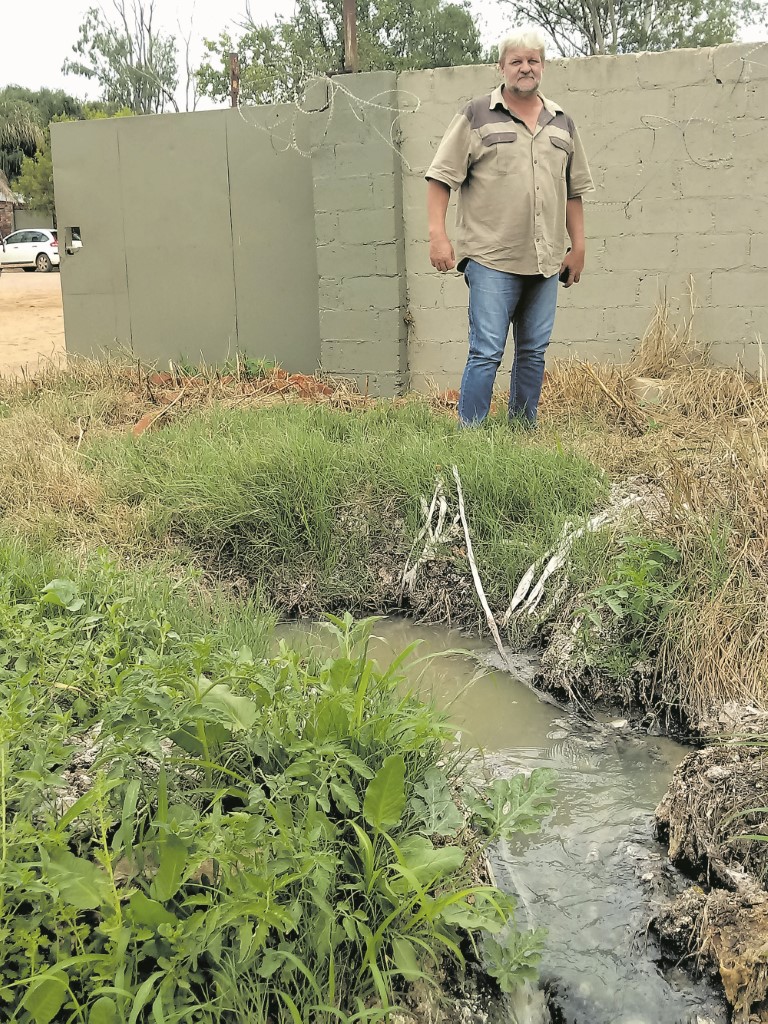 Van der Merwe se frustrasie spruit uit riool wat al vir langer as ’n jaar gereeld in sy onderneming se parkeerterrein inspoel. Die meegaande stank verdryf glo sy kliënte. Hulle wil ook nie deur die “riooldam” ry nie. Sy restaurant is reg langs die rivier geleë.