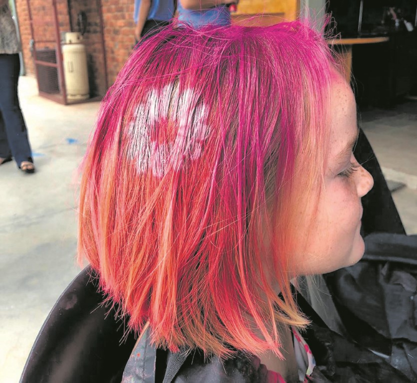 Petria Stapelberg het met ’n helder pienk haredos gespog ná die Waterbergskool vir CVO in Modimolle se Kansa Shavathon wat op Vrydag 5 April plaasgevind het.