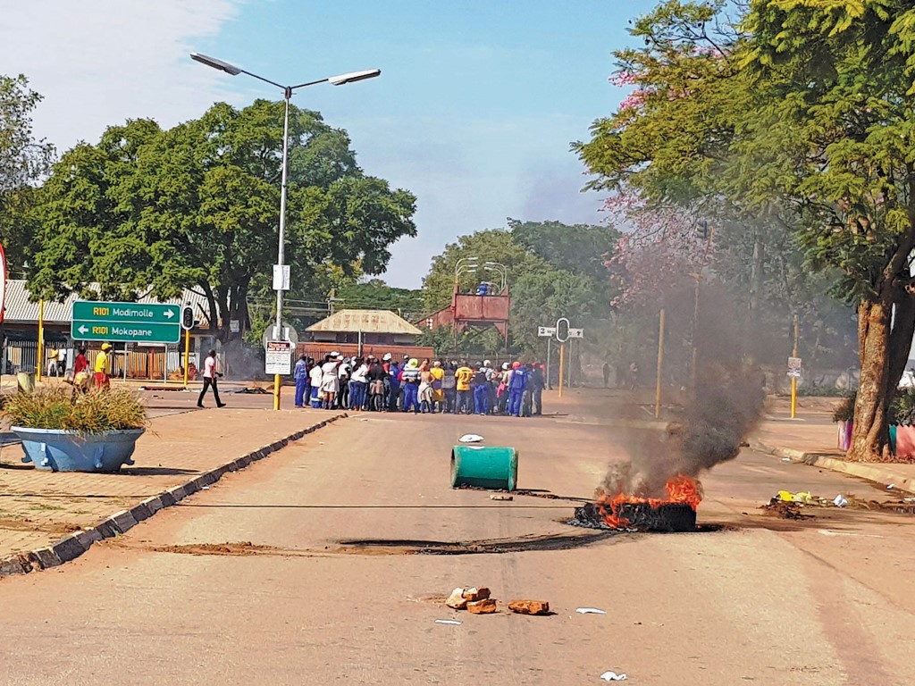 After receiving the disputed notice, all hell broke loose as the angry workers emptied dust bins on Nelson Mandela Street.