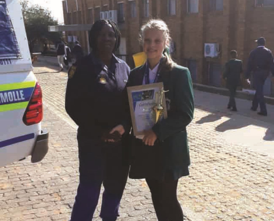 ’n Jong inwoner van Modimolle het op Donderdag 21 Junie deelgeneem aan die junior provinsiale kommissarisdebat. Janique Erasmus, ’n gr. 9-leerder aan Hoërskool Nyl-stroom, was algeheel tweede in die Modimolle-kring wat uit ses gebiede bestaan. Die kinders het gepraat oor hoe hulle die uitdaging van dwelms en alkoholmisbruik sal hokslaan. Sy neem weer op Woensdag 25 Julie deel aan die provinsiale uitdunne. Op die foto is sy saam met sers. Anna Monyela van die polisie.