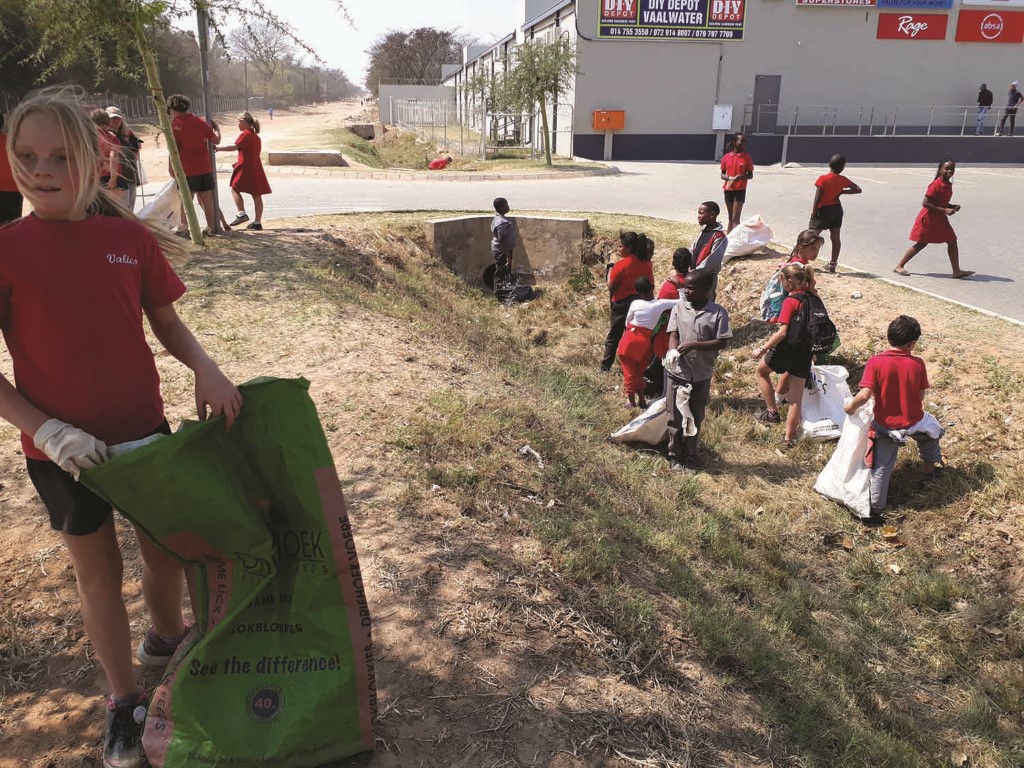 Die laerskoolleerders het ongeveer 3 km in twee uur afgelê om papiere op te tel. “’n Bottelstuk het my gesny,” het Danike le Roux van Laerskool Vaalwater gesê. Nog ’n leerder, Marisha Benade, het gesê hulle het “vreeslike erge goed” opgetel.