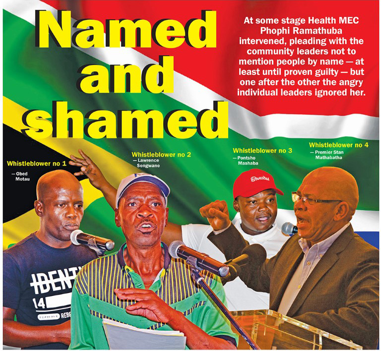Fire-spitting community leaders in Bela-Bela on Friday 26 October stunned Limpopo Premier Stan Mathabatha, when they publicly named and shamed three sitting local councillors, allegedly involved in corruption.