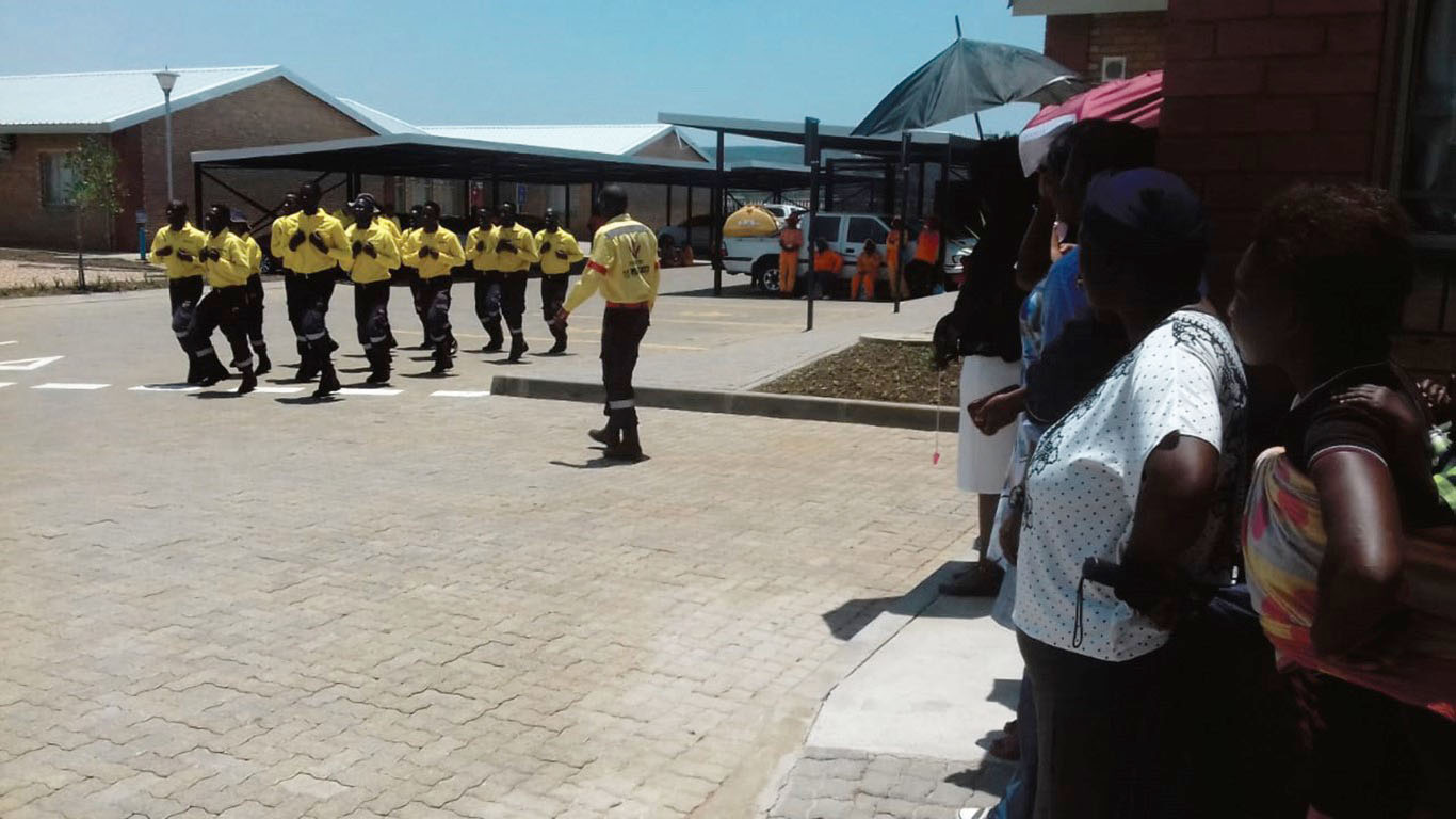 WoF Bela-Bela’s health and safety official, Solly Rathepe, led the team in performing the fire drill, drew deafening applause from throngs of the locals.