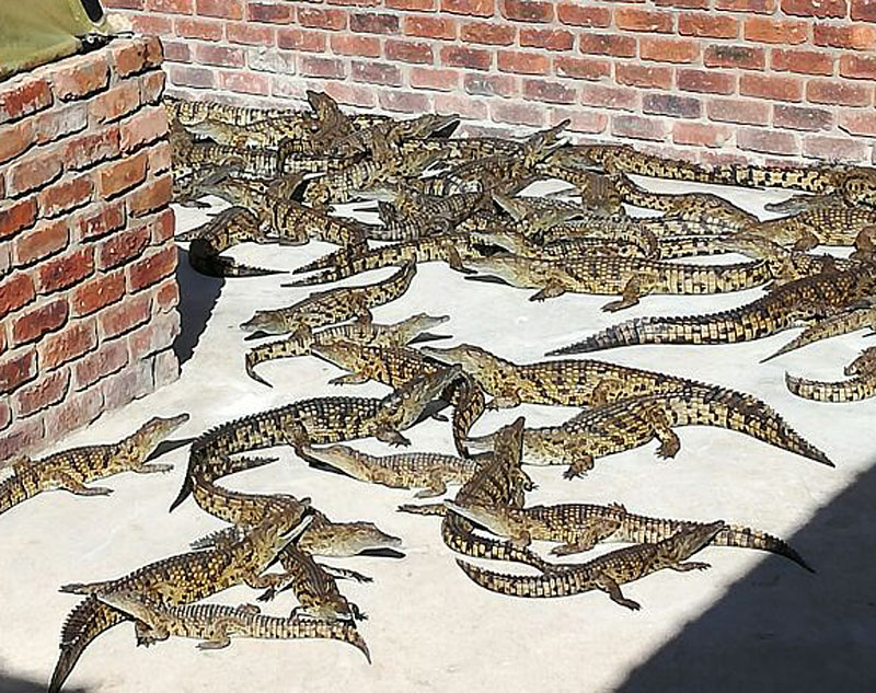 The breeding crocodiles range in size from 2.5m to 5m. They are between 10 and 40 years old and weigh anything from 60km to 600kg.